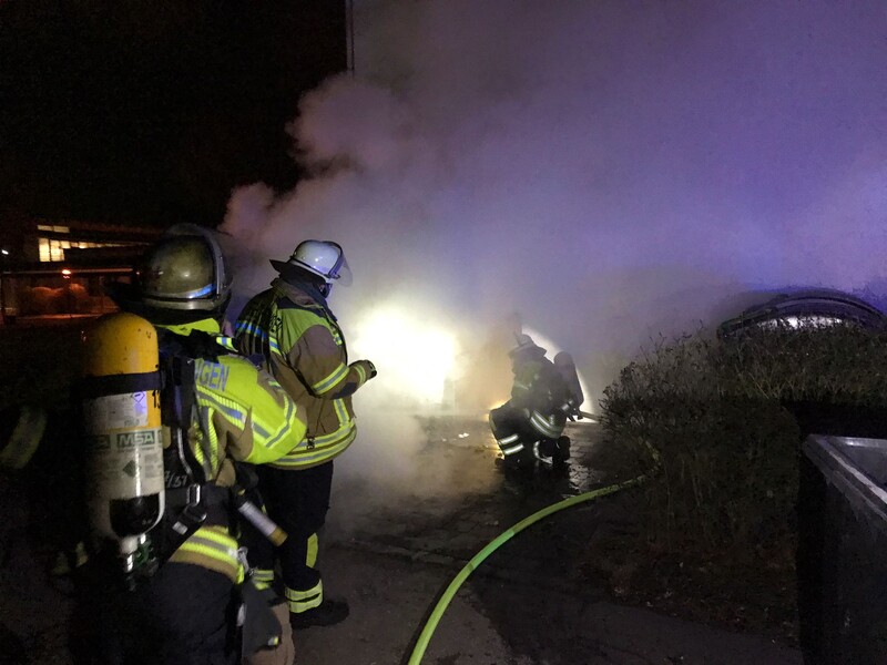 Die Feuerwehr wurde zu einem brennenden Mülleimer alarmiert. Mit einem Trupp unter Atemschutz wurde das Feuer abgelöscht.