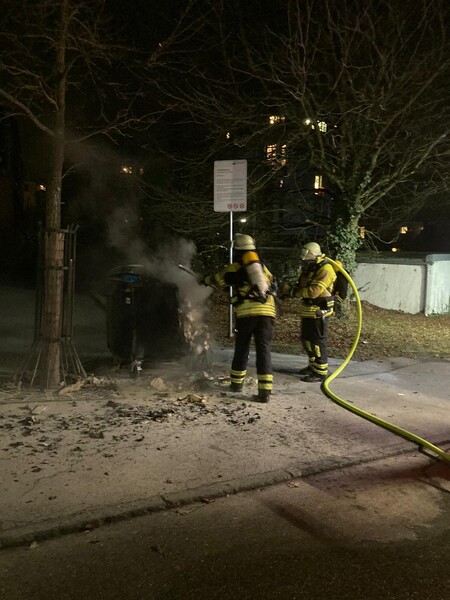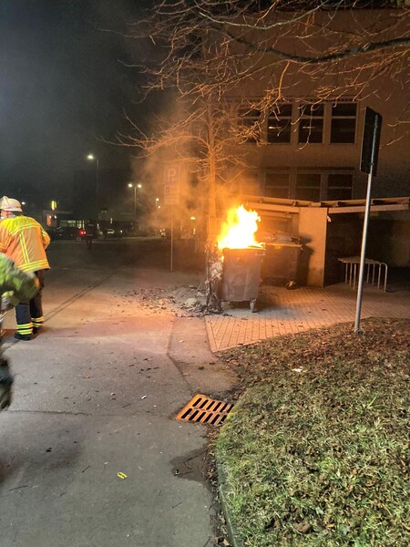 Der brennende Müllcontainer wurde von uns mittels Schnellangriff Wasser unter Atemschutz gelöscht. Die Einsatzstelle wurde an die Polizei für weitere Maßnahmen übergeben.