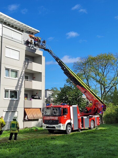 Die Feuerwehr öffnete die Wohnungstüre damit der Rettungsdienst die Person in der Wohnung medizinisch versorgen konnte. Aufgrund des Krankheitsbildes wurde die Person über die Drehleiter aus dem 5. Obergeschoss zum Rettungswagen transportiert.