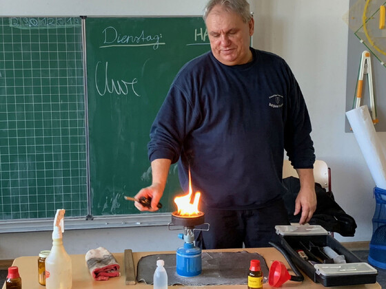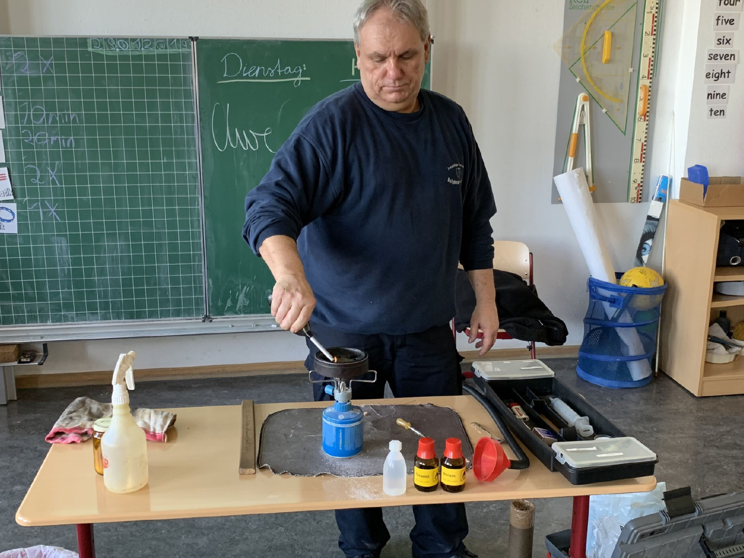 Der Unterricht beginnt im Lehrsaal der Feuerwache.
